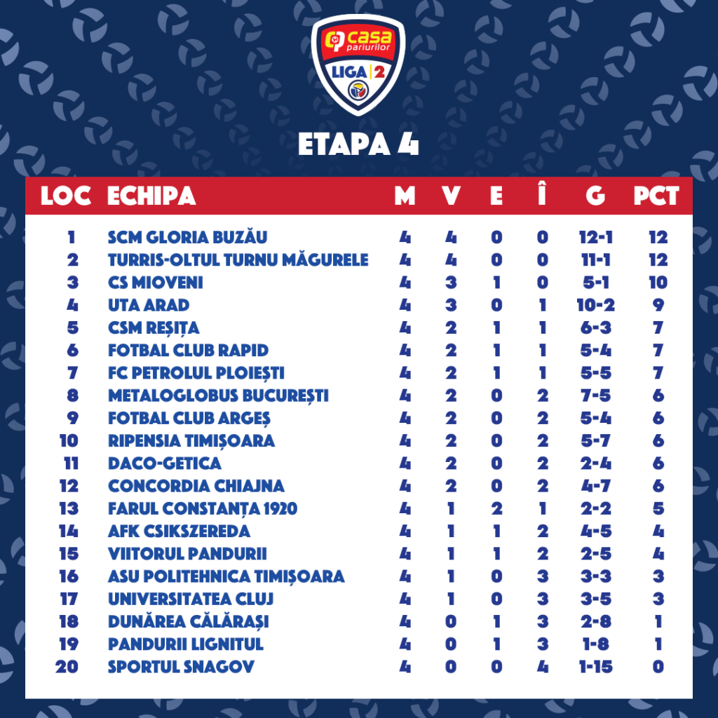 Fotbaliștii U20 utilizați în etapa 4 a Ligii 2 Casa Pariurilor, 2019-2020