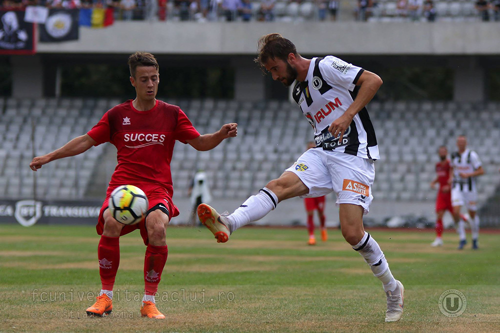 Trei partide s-au disputat duminică, în epilogul rundei a treia a eşalonului secund, capul de afiş fiind derby-ul de la Cluj-Napoca, acolo unde U a primit vizita singurei nou-promovate cu punctaj maxim după două runde, ACS Energeticianul. Meciul de pe Cluj Arena s-a terminat cu victoria la scor de forfait a gazdelor, pentru care Cristian Gavra (foto, în dreapta) a reuşit o dublă, tabela fiind completată cu numele căpitanului Giurgiu.