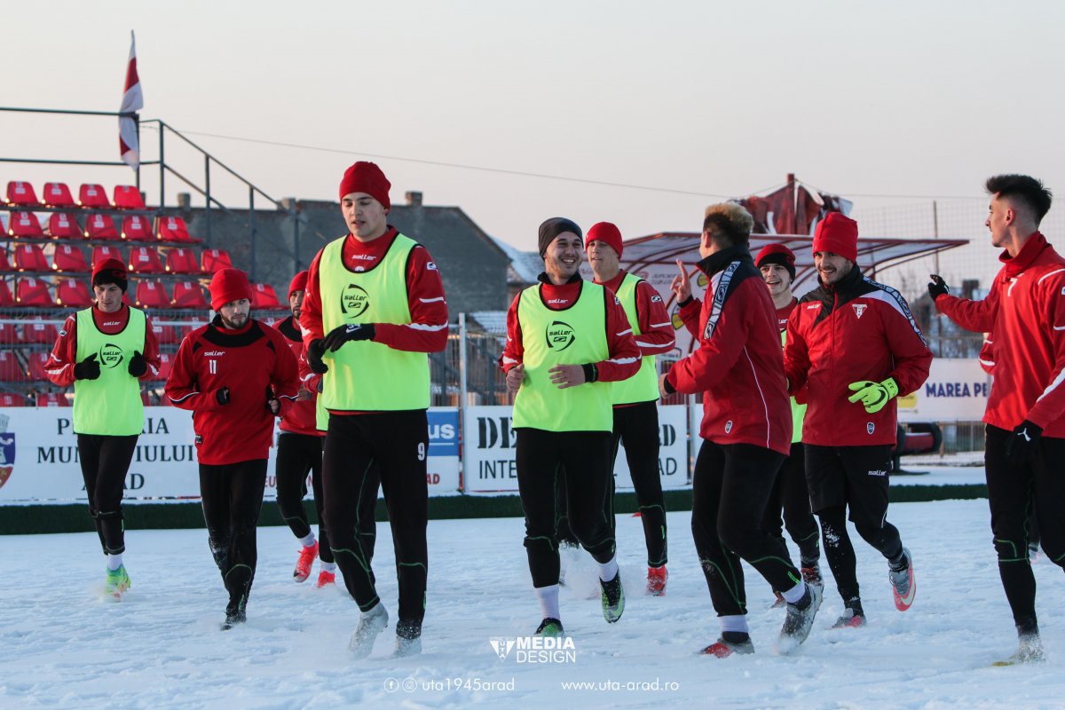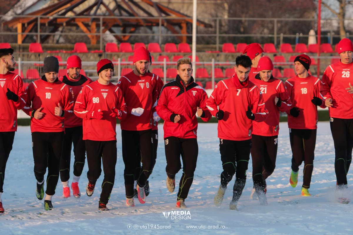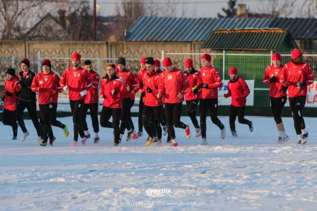 Echipa fanion a Aradului e printre primele formații din fotbalul românesc ce au pus punct vacanței de iarnă la nicio săptămână de la intrarea în noul an. Chiar de ziua de nume a lui Ionuț Popa, roș-albii” au transpirat pentru prima oară în 2019 pe terenul sintetic acoperit cu zăpadă, de la „Motorul”.
