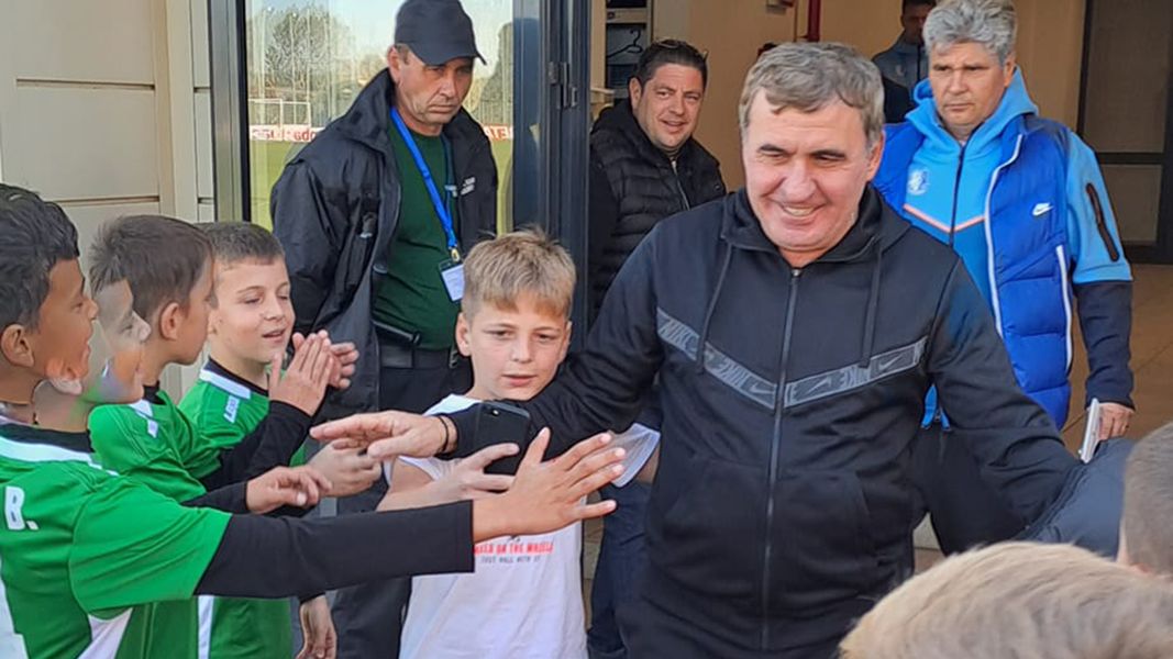La intrarea pe teren, înainte de lovitura de începere, spectatorii din tribunele Stadionului Municipal din Turnu Măgurele s-au ridicat în picioare pentru a-l aplauda pe Gheorghe Hagi.