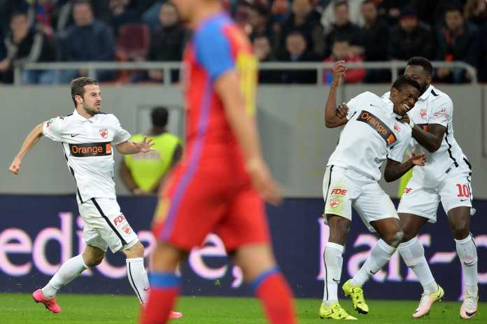 După ce roș-albaștrii au rămas în zece, Bourceanu fiind eliminat înainte de pauză (43), Dinamo a revenit pe tabelă datorită golului înscris de Ekeng (51): șut cu stângul de la peste 25 de metri.