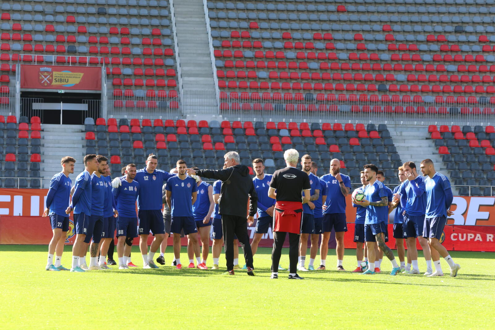 Ambele echipe au avut câte o oră la dispoziție pentru ședința de pregătire de pe Stadionul Municipal Sibiu, timp în care au pus la punct ultimele detalii înaintea partidei de miercuri. La arena din Sibiu a avut loc și un moment special. Cei doi tehnicieni, Cristiano Bergodi și Ioan Ovidiu Sabău, s-au fotografiat alături de trofeul Cupei României Betano și au rememorat un duel Brescia – Lazio, din 1993, când erau adversari pe teren.
