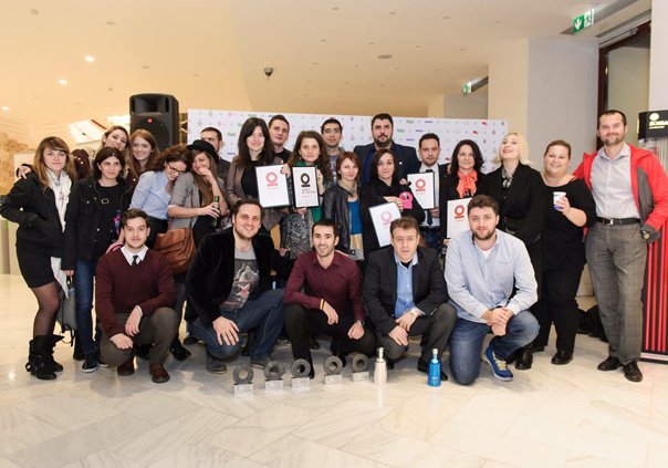 Foto: Echipele FRF, Webstyler și GMP, care au lucrat la campania ”Arena Fanilor”, s-au fotografiat cu premiile de la Gala Internetics 2015