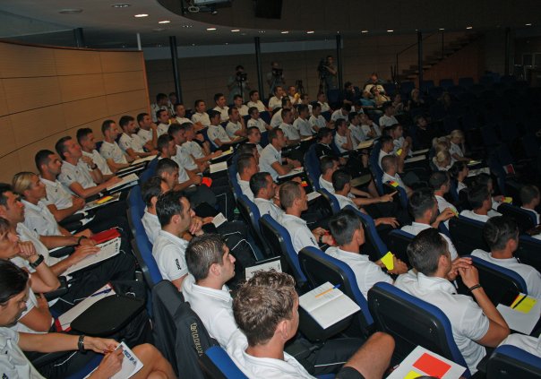 Luni, arbitrii prezenți au participat la testarea fizică desfășurată, conform normelor FIFA, pe stadionul Dinamo, iar marți, aceștia s-au mutat în sala ”Nicolae Dobrin”, de la Casa Fotbalului, pentru analiza activității din primele runde ale sezonului 2015-2016 al Ligii I realizată împreună cu președintele CCA, Kyros Vassaras.