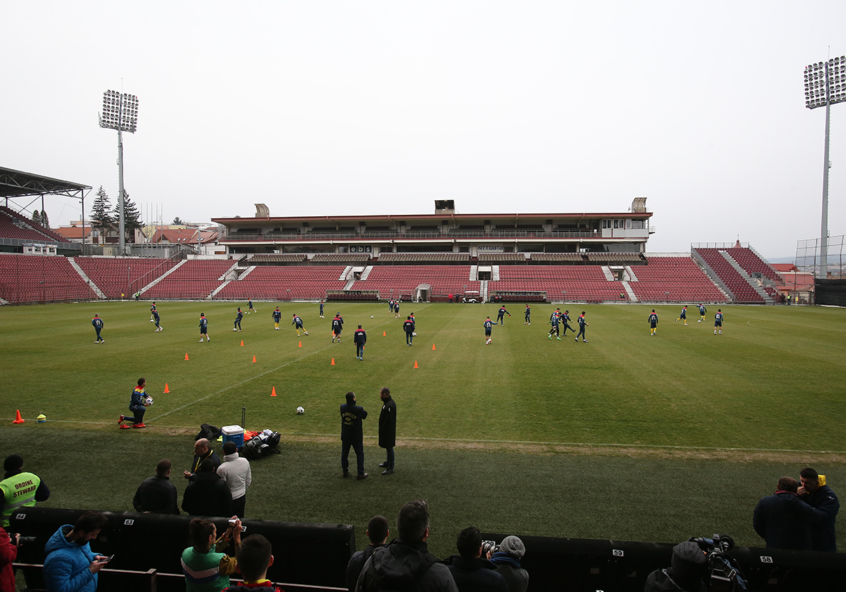 La recomandarea UEFA, pentru a proteja suprafața de joc, ședințele de pregătire dinaintea partidei România – Muntenegru, programată duminică, la Cluj-Napoca, au fost mutate de pe Cluj Arena pe stadionul ”Dr. Constantin Rădulescu”.