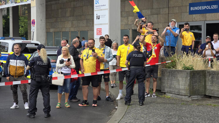 La sosirea în gara din Würzburg, tricolorii au avut parte de o nouă surpriză plăcută: câțiva suporteri români i-au întâmpinat cu urale.