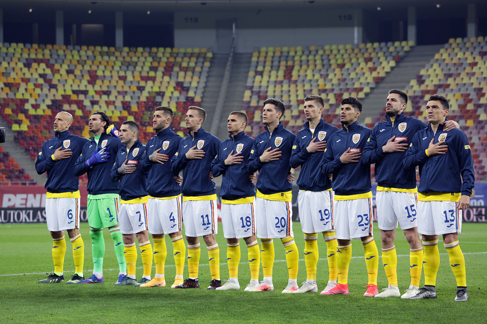 1. Florin Niță • 2. Vasile Mogoș • 3. Alin Toșca • 4. Ovidiu Popescu • 5. Ionuț Nedelcearu • 6. Vlad Chiricheș • 7. Nicolae Stanciu • 8. Alexandru Cicâldău • 9. George Pușcaș • 10. Alexandru Maxim • 11. Nicușor Bancu • 12. David Lazar • 13. Claudiu Keșeru • 14. Ianis Hagi • 15. Andrei Burcă • 16. Ionuț Radu • 17. Erik Bicfalvi • 18. Răzvan Marin • 19. Florin Tănase • 20. Dennis Man • 21. Valentin Mihăilă • 22. Mario Camora • 23. Florinel Coman
