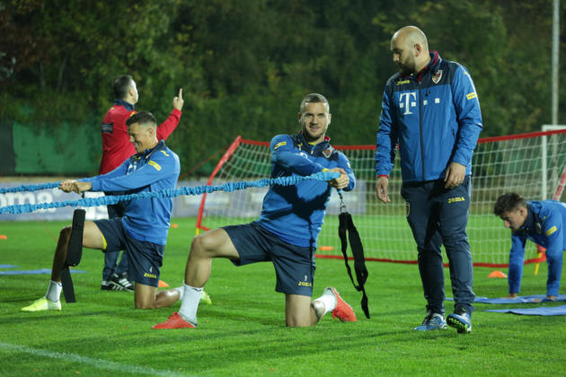 Prima parte a zilei a însemnat concentrare și intensitate pentru tricolori. Mâine e antrenamentul oficial, astfel că staff-ul tehnic a mai putut lucra doar astăzi, în liniște, registrul tactic pentru partida de vineri.