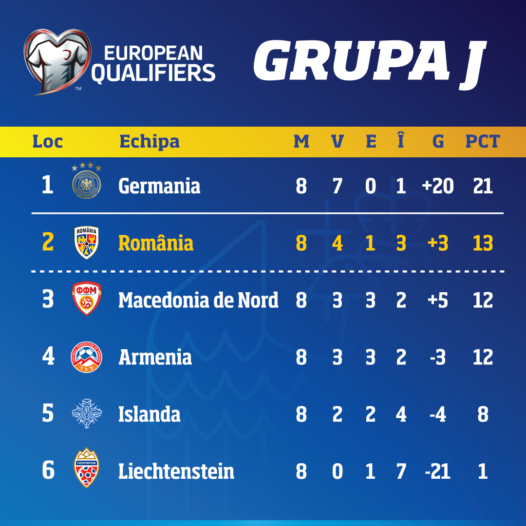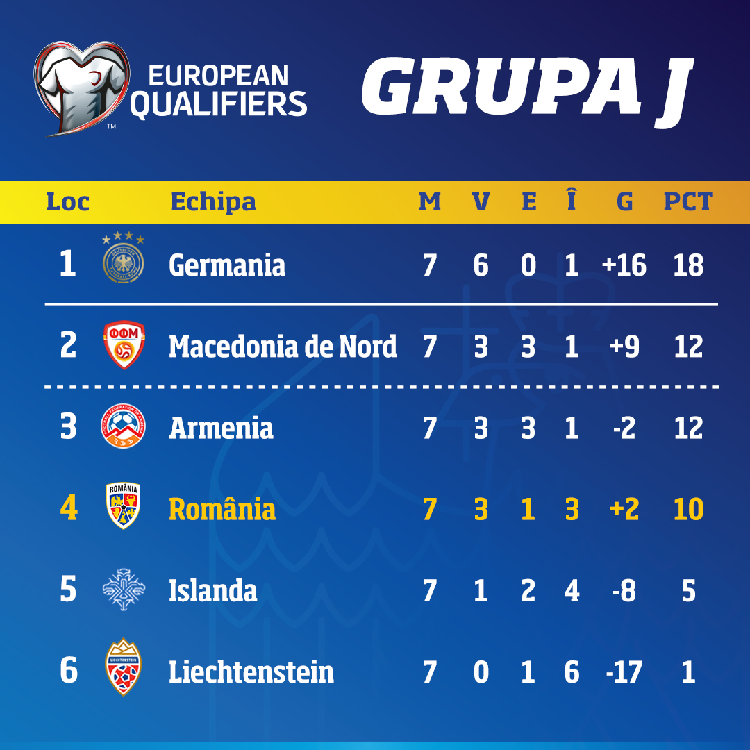 Aseară s-au jucat meciurile: Germania – România 2-1, Islanda – Armenia 1-1, Liechtenstein – Macedonia de Nord 0-4