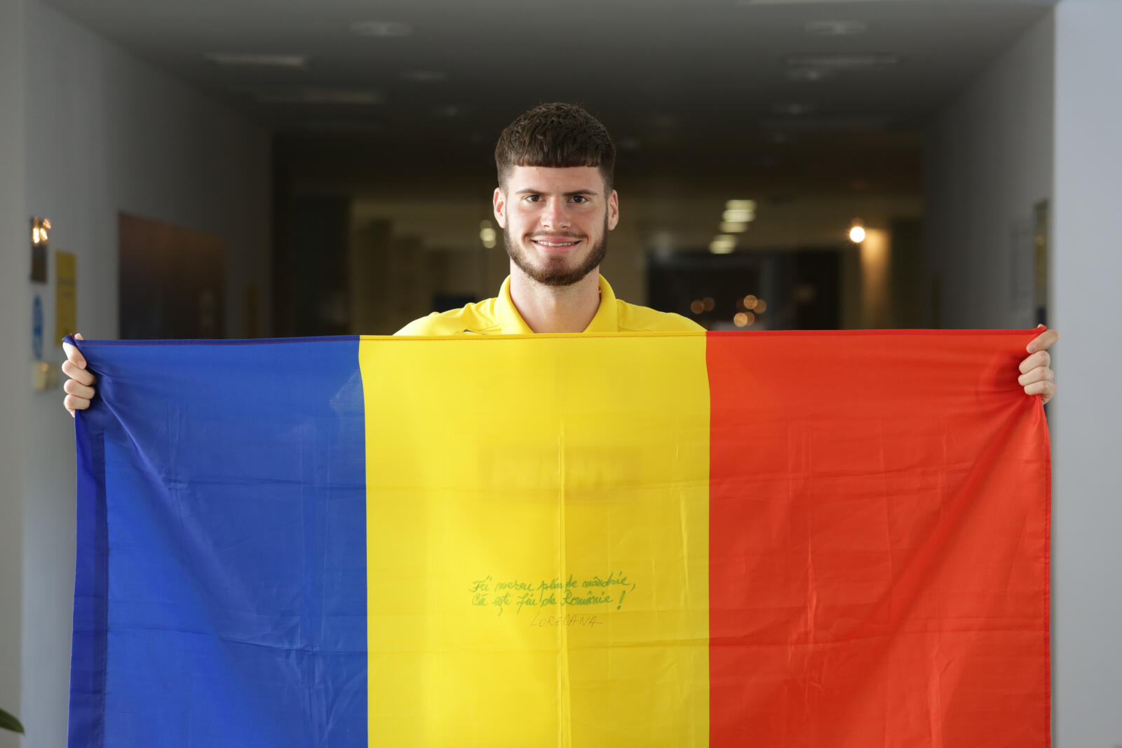 La Tokyo, unde pleacă azi, Tudor va purta cu el drapelul-talisman dăruit de Loredana și pe care aceasta a scris un mesaj ca o flacără.