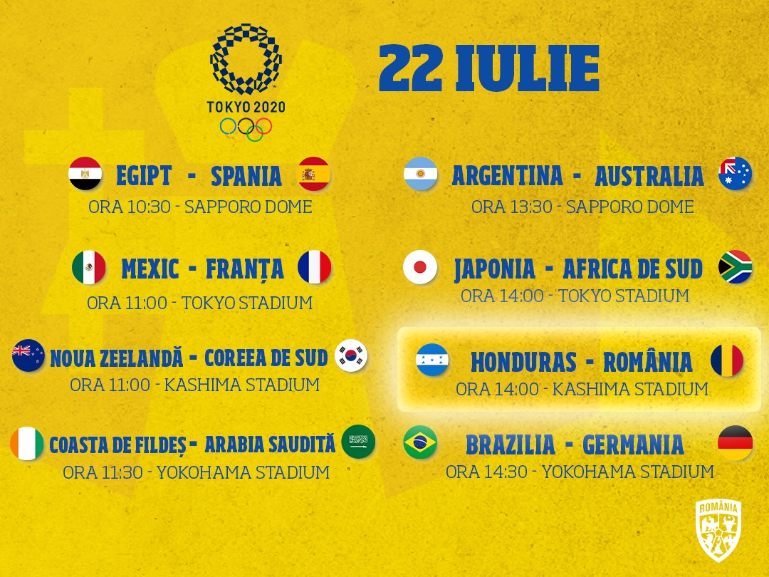 Bună dimineața, români de pretutindeni, în zi de meci! Ghetele băieților sunt pregătite la Kashima, de la 14:00 întâlnim Honduras la Jocurile Olimpice, live pe TVR1, Eurosport și RRA! LUPTĂM ÎMPREUNĂ!