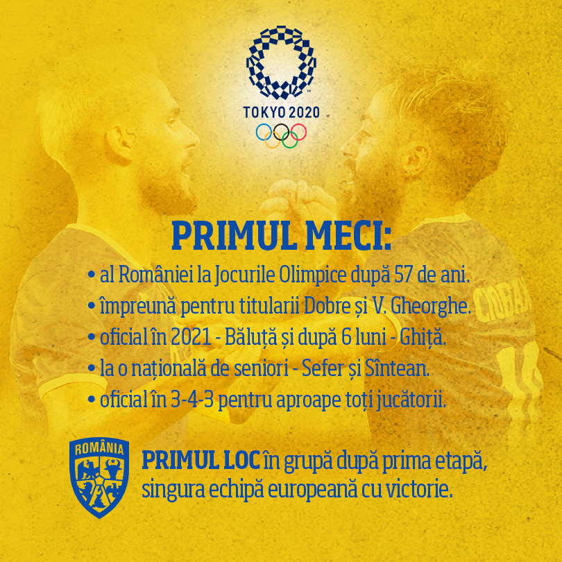 AMR 2 zile până la primul meci la Jocurile Olimpice! Dar drumul a început acum 4 ani. România U21 pregătea preliminariile EURO 2019 cu un cantonament în Spania în 2017 și două partide amicale. În prima dintre ele, cu Rusia, au jucat Andrei Ciobanu, Alex Dobre, Alex Pașcanu, Virgil Ghiță și Marco Dulca. Cinci tokyotricolori de azi!