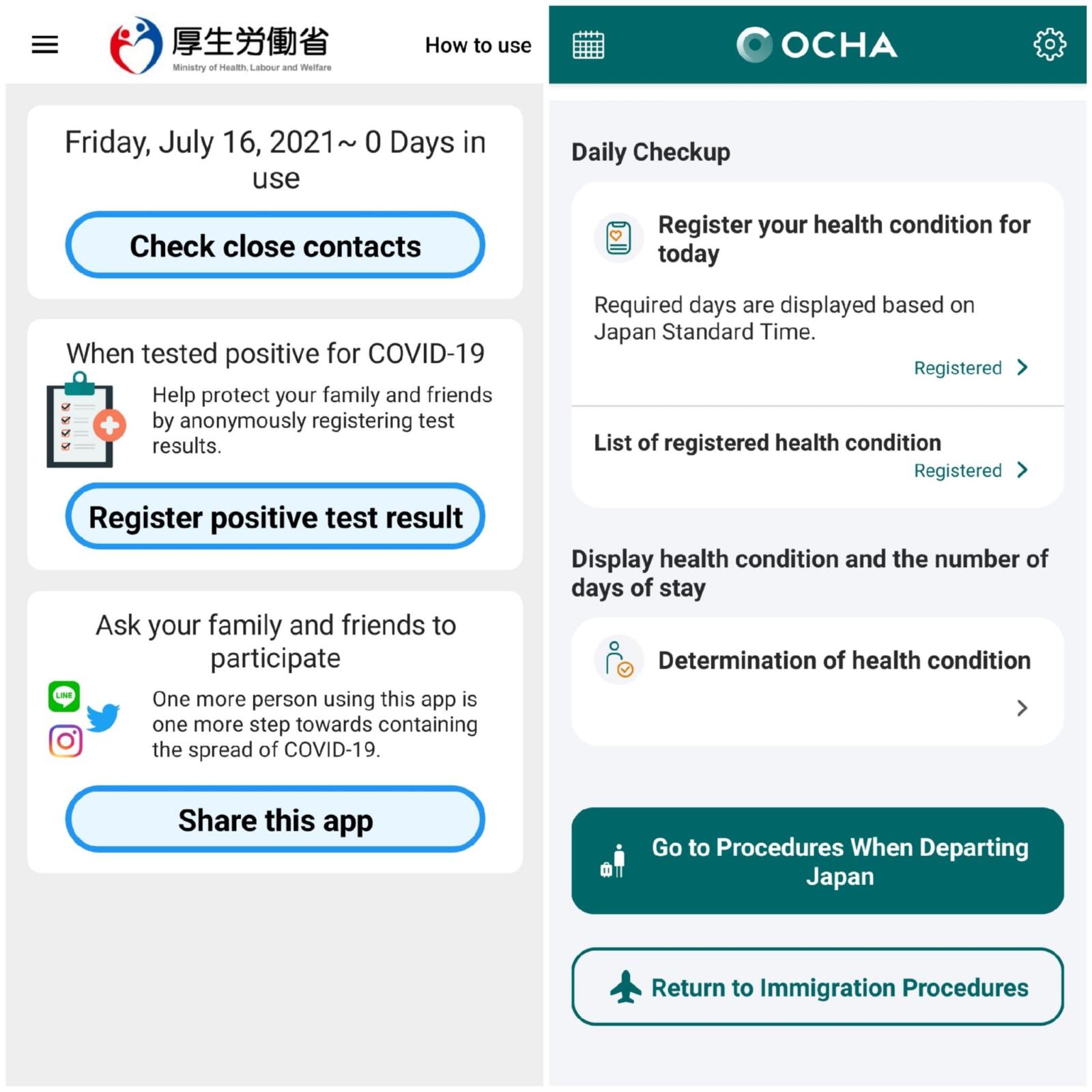 În plus, o aplicație mobilă obligatorie, COCOA, instalată pe telefonul fiecăruia încă din prima zi în Japonia, monitorizează non-stop deplasările făcute, astfel încât să poată minimiza riscul răspândii virusului, prin identificarea contacților, în cazul unei persoane pozitive.