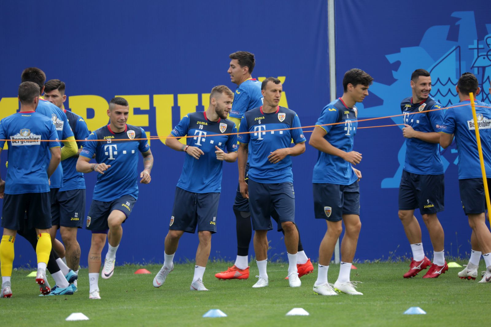 La ședința de pregătire au participat 24 de jucători dintre cei 25 convocați pentru „dubla” cu Muntenegru și Serbia. Singurul absent din lotul tricolorilor a fost mijlocașul Eric Bicfalvi, care nu va putea fi recuperat până la ora primului joc, cel cu Muntenegru.