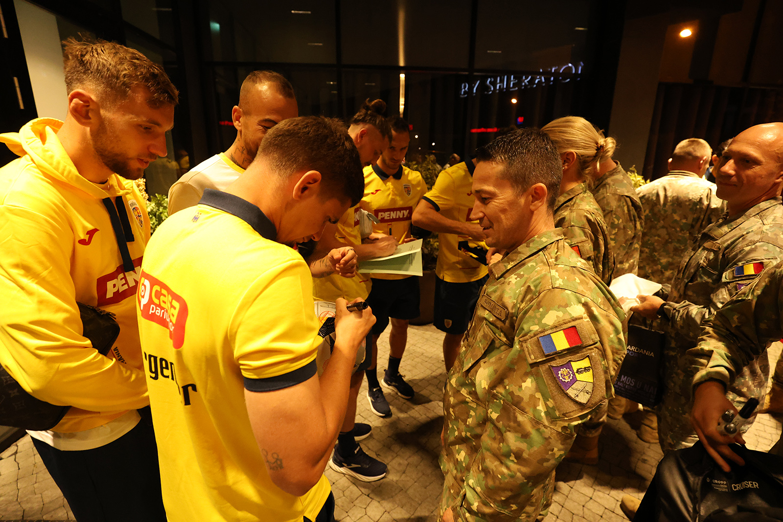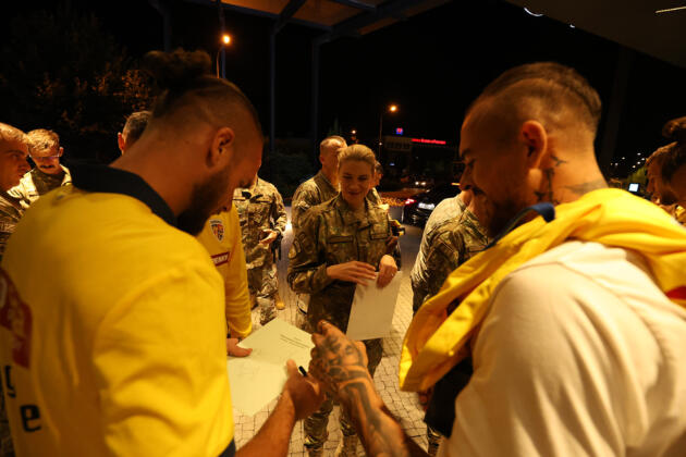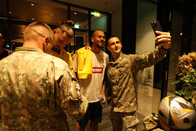 - 12:00 – După antrenamentul oficial de aseară, Echipa Națională a avut parte de un moment special la sosirea la hotelul din Kosovo. Un grup de militari români detașați la baza NATO din Priștina i-a așteptat pe tricolori pentru a-i saluta și a le arăta susținerea. Tricolorii au fost impresionați de gest și s-au fotografiat alături de militarii noștri, oferindu-le autografe și mulțumiri. „Vă mulțumim frumos, suntem alături de voi și vă susținem. Ați făcut România mai frumoasă prin ce ați realizat în Germania” a fost mesajul transmis de militarii români.