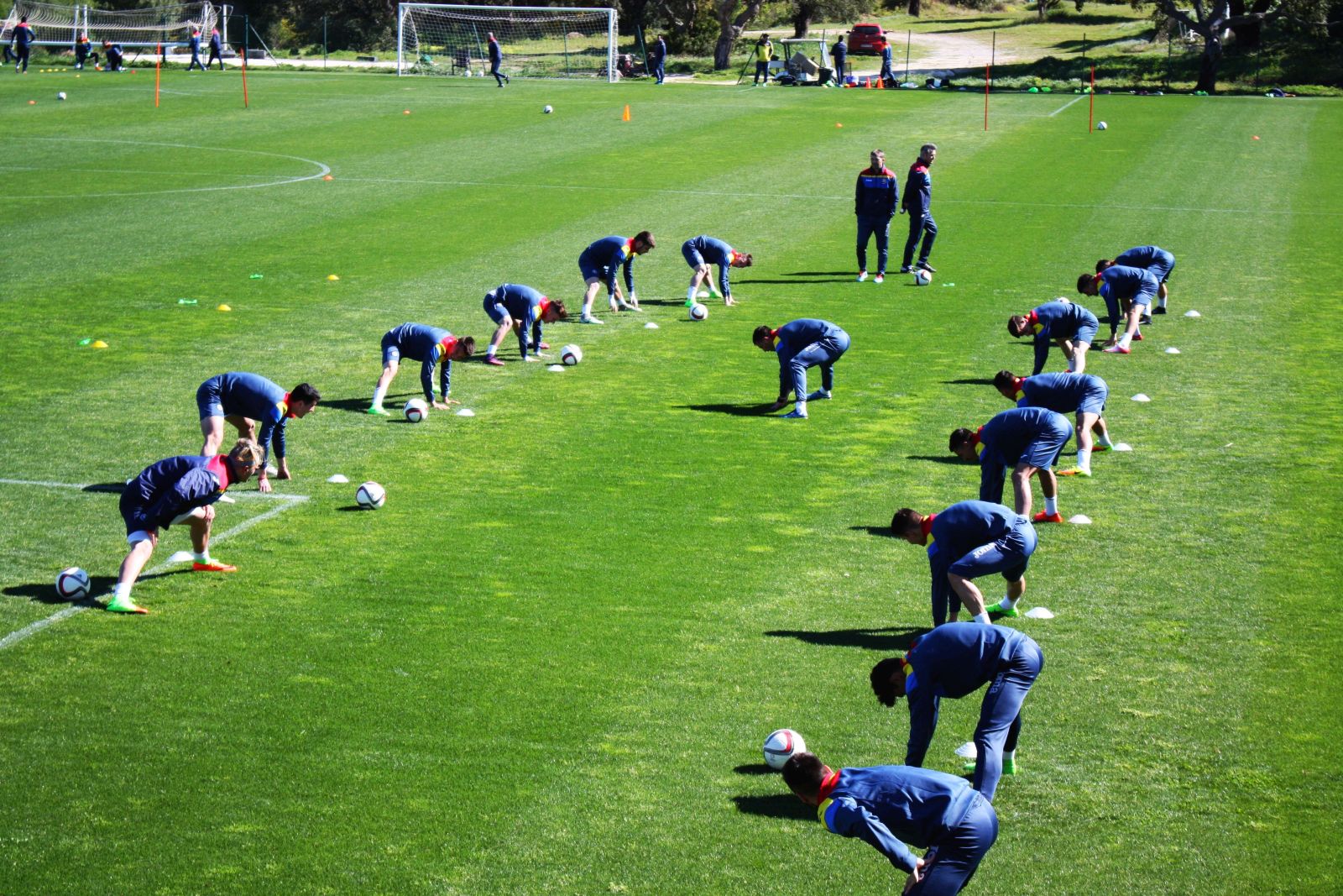 Miercuri, la San Rogue, selecționerul Daniel Isăilă a susținut primul antrenament din cantonamentul pe care tricolorii îl desfășoară în Spania. Ședința de pregătire a durat aproximativ 90 de minute. La antrenament nu au participat cei patru fotbaliști la care selecționerul a decis să renunțe pentru acest stagiu de pregătire: Ionuț Nedelcearu, Alin Dudea, Patrick Petre (toți de la Dinamo) și Vlad Olteanu (Sepsi OSK). Aceștia au plecat spre casă chiar înainte de antrenament, nu înainte de a-și lua la revedere de la colegi și de a le cere scuze.