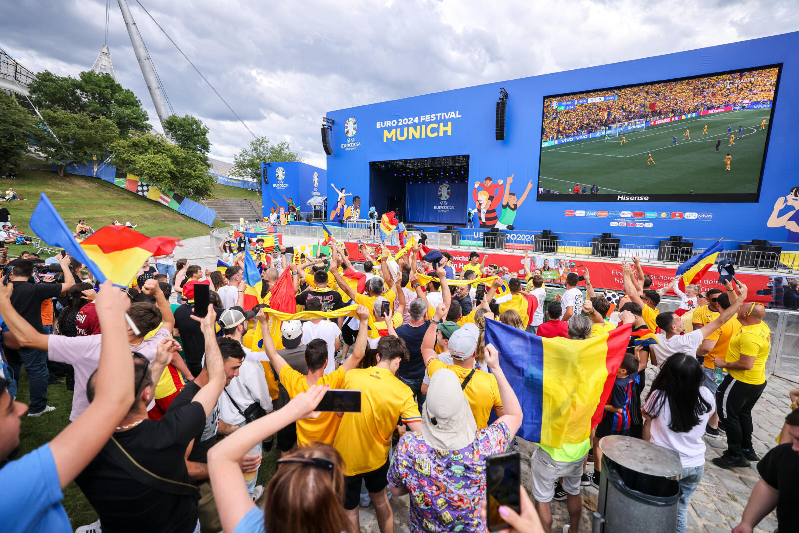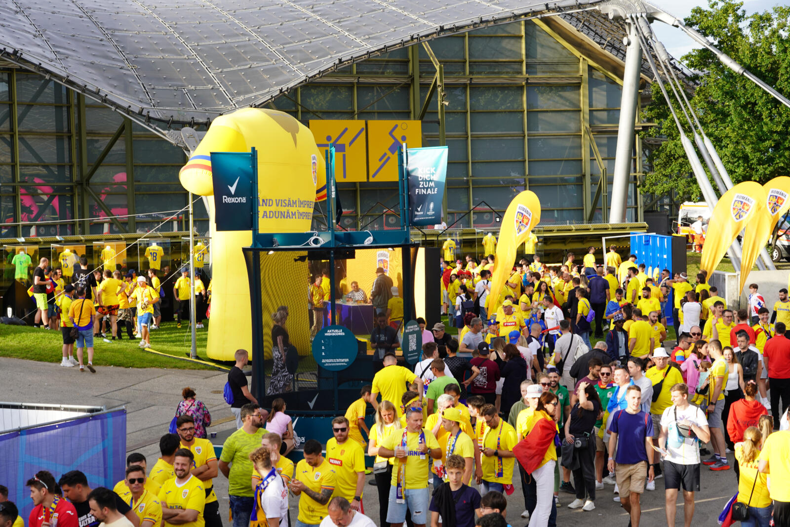 A fost atmosferă de sărbătoare și în Fan Zone-ul din Munchen, atât înainte, dar mai ales la finalul partidei. Suporterii prezenți în zona dedicată României au avut ocazia să se fotografieze alături de Marius Niculae și Lucian Sănmărtean, care au fost prezenți la Olympiapark înainte de partida România – Ucraina.