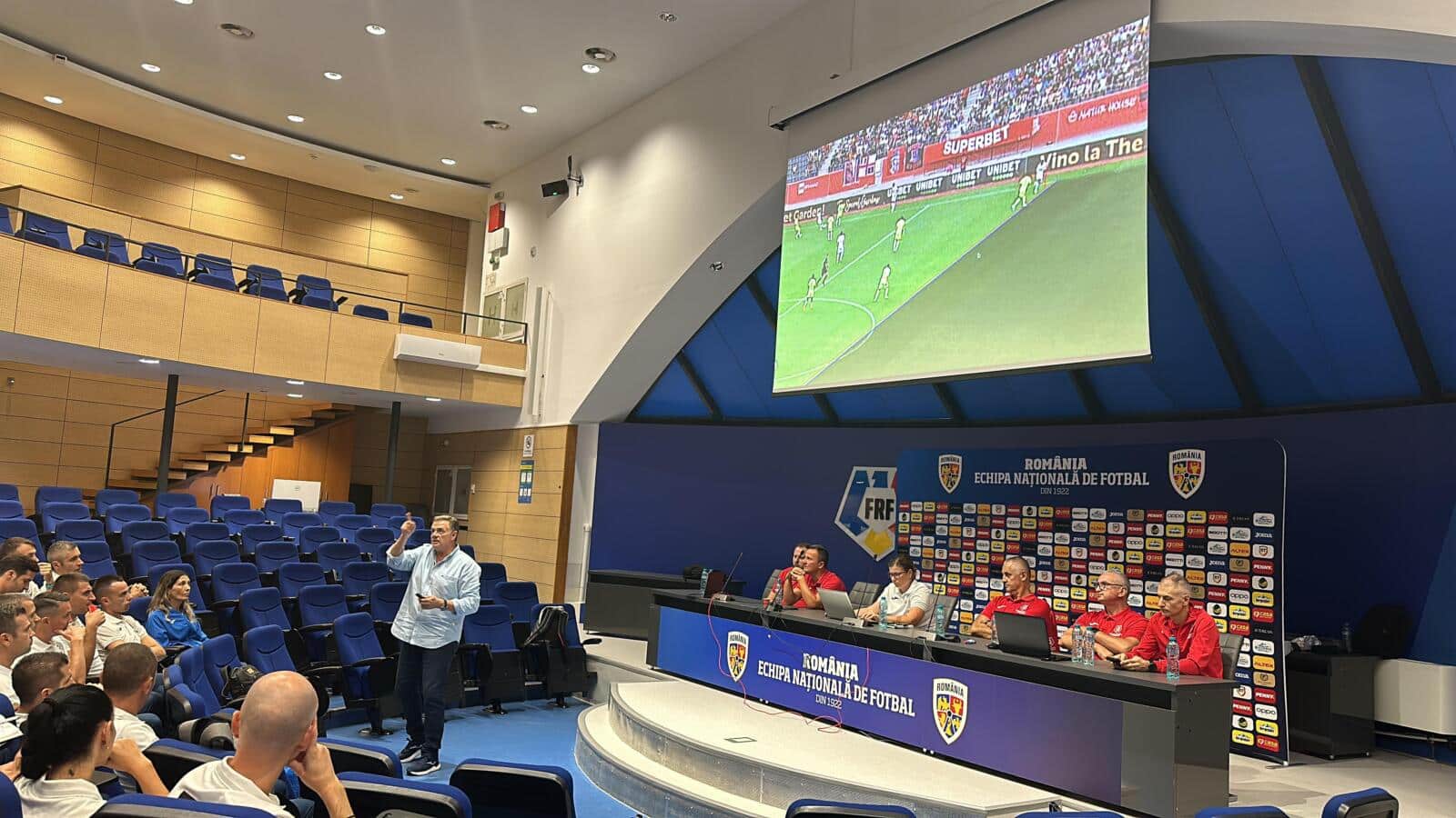 Arbitrii au revenit în sală în ziua a doua a cursului, pentru analize video, discuții și dezbateri cu membrii CCA. Kyros Vassaras a profitat de acest prilej pentru a avea un dialog și cu operatorii video din mașinile VAR, pentru a veni în sprijinul arbitrilor și pentru eficientizarea procesului de analiză a fazelor din fața monitoarelor.