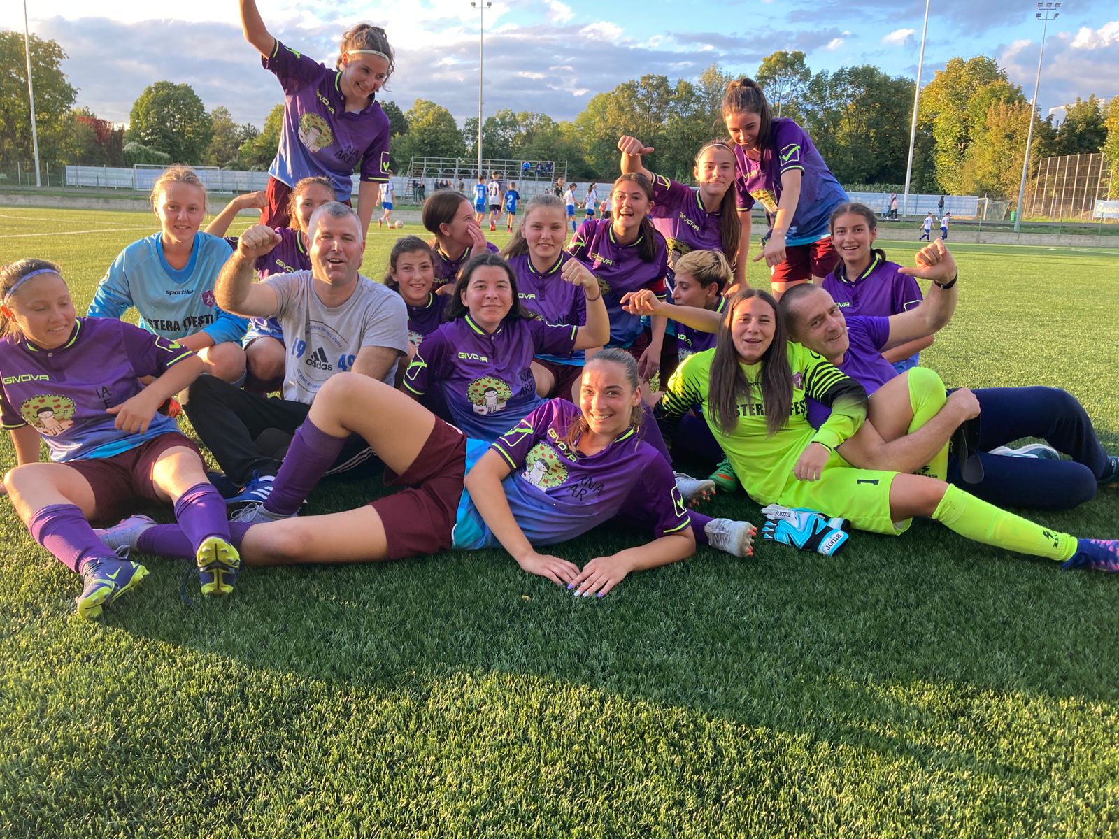 Avem, aici, la Țifești, o sală de sport, un teren sintetic. Dar meciurile le jucăm la Jariștea – fetele de la U15 și la Panciu – echipa de senioare, care e de fapt formată tot din junioare. Cu o excepție. Avem o jucătoare născută în 2002, care anul acesta a împlinit 20 de ani. Dar celelalte fete au 16-17 ani.