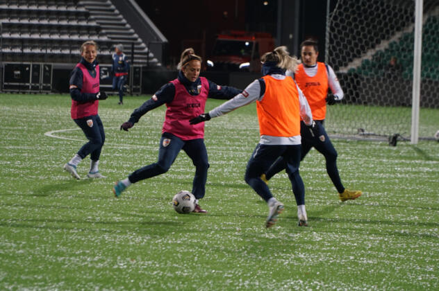 Naționala feminină a ajuns la stadionul din Complexul Sportiv Național „Arcul de Triumf”! Ultimul joc al acestui an începe de la ora 20:00!