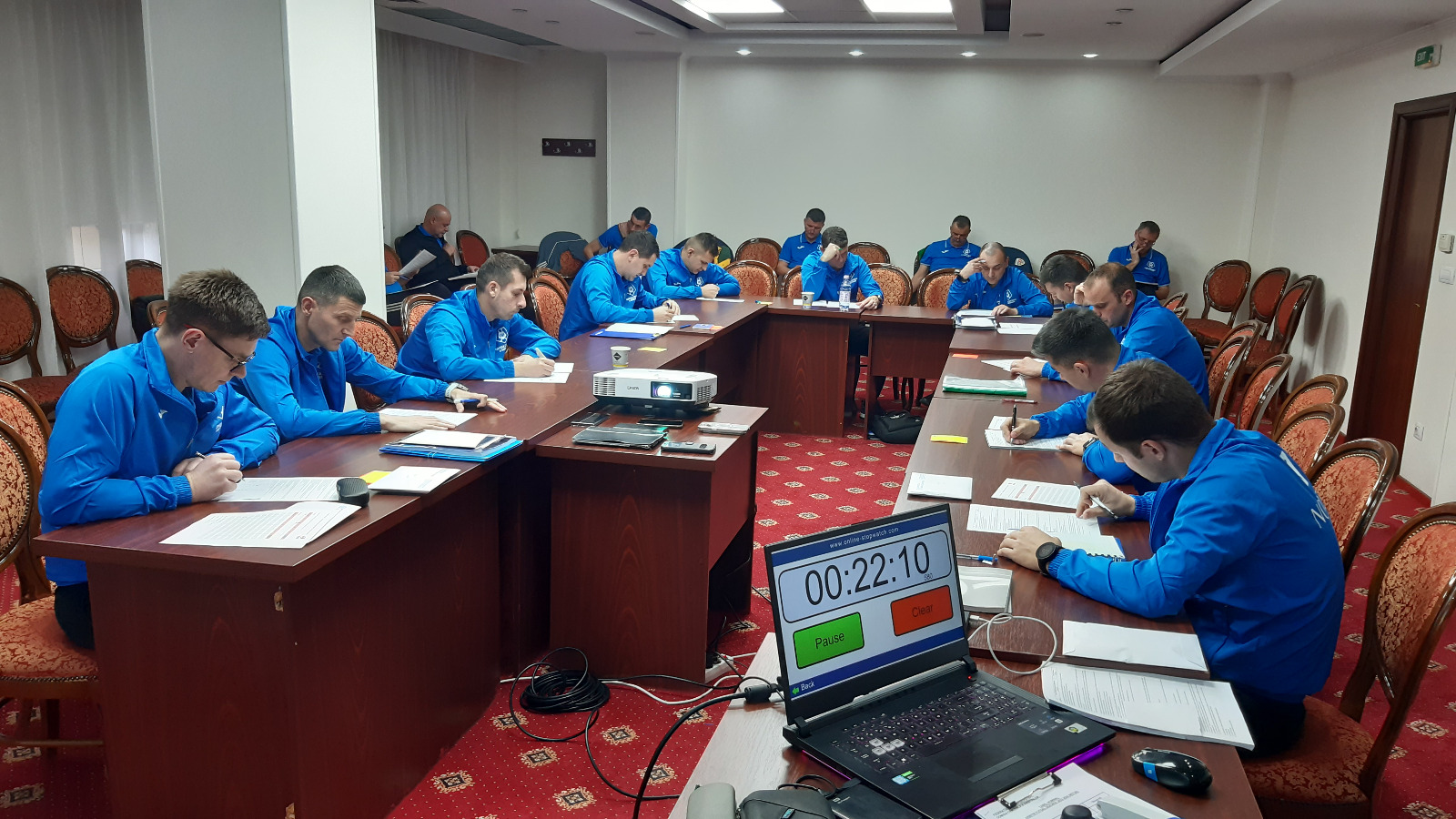 Prima zi a inclus și testarea teoretică și video a participanților, după acestea fiind furnizate cele mai noi informații și modificări ale Legilor Jocului de Futsal 2023-2024. Bogdan Sorescu și Gabriel Gherman au prezentat spre analiză arbitrilor și observatorilor de arbitri futsal mai multe clipuri cu abateri comise în suprafața de pedeapsă, atacuri neregulamentare.