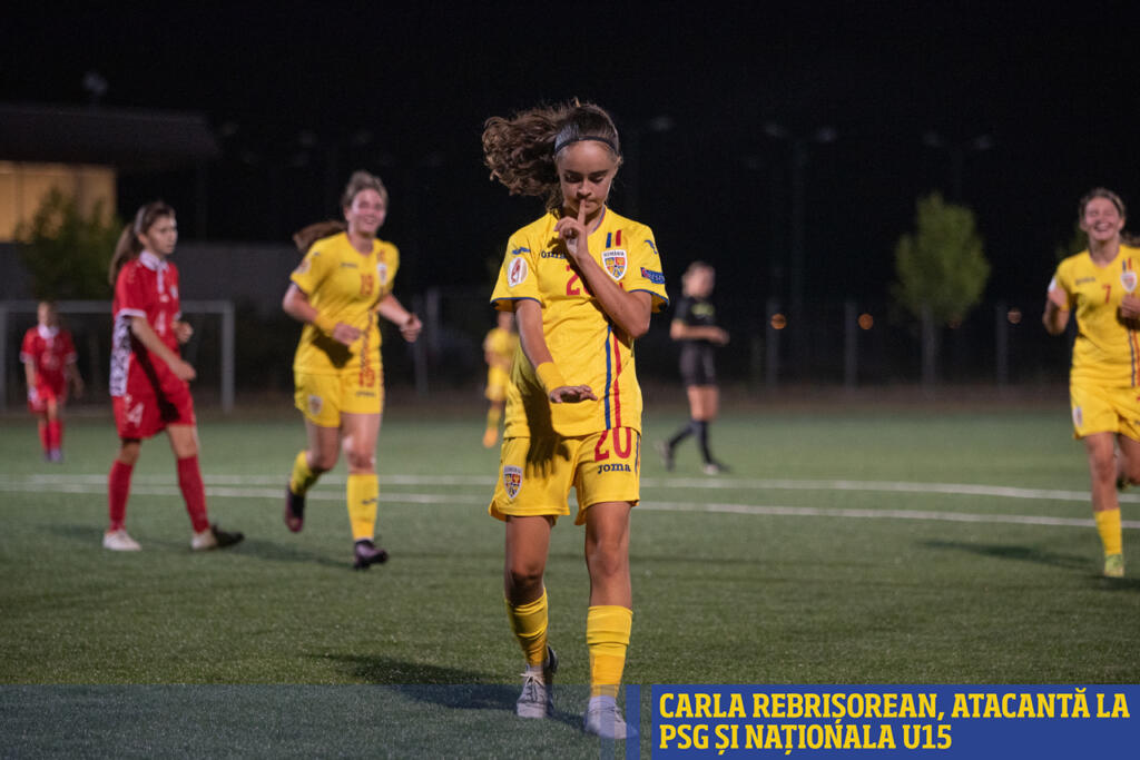 2. Tricolorele U15 au avut două prestații entuziasmante în cele două meciuri amicale disputate contra Republicii Moldova în luna august, câștigând cu 5-0 și 4-1. Una dintre marcatoare a fost Carla Rebrișorean, atacant la junioarele celor de la Paris Saint-Germain.