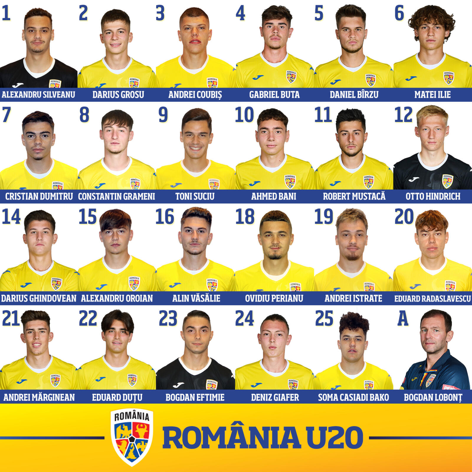 Pentru această acțiune, selecționerul Bogdan Lobonț a convocat 23 de jucători.