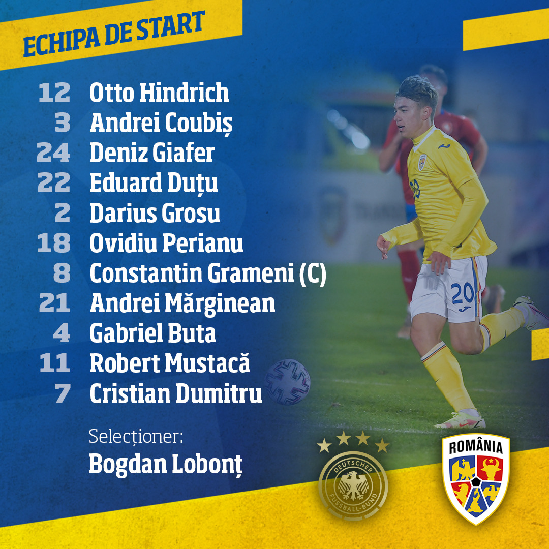 Formula de start folosită de selecționerul Bogdan Lobonț pentru meciul cu Germania.