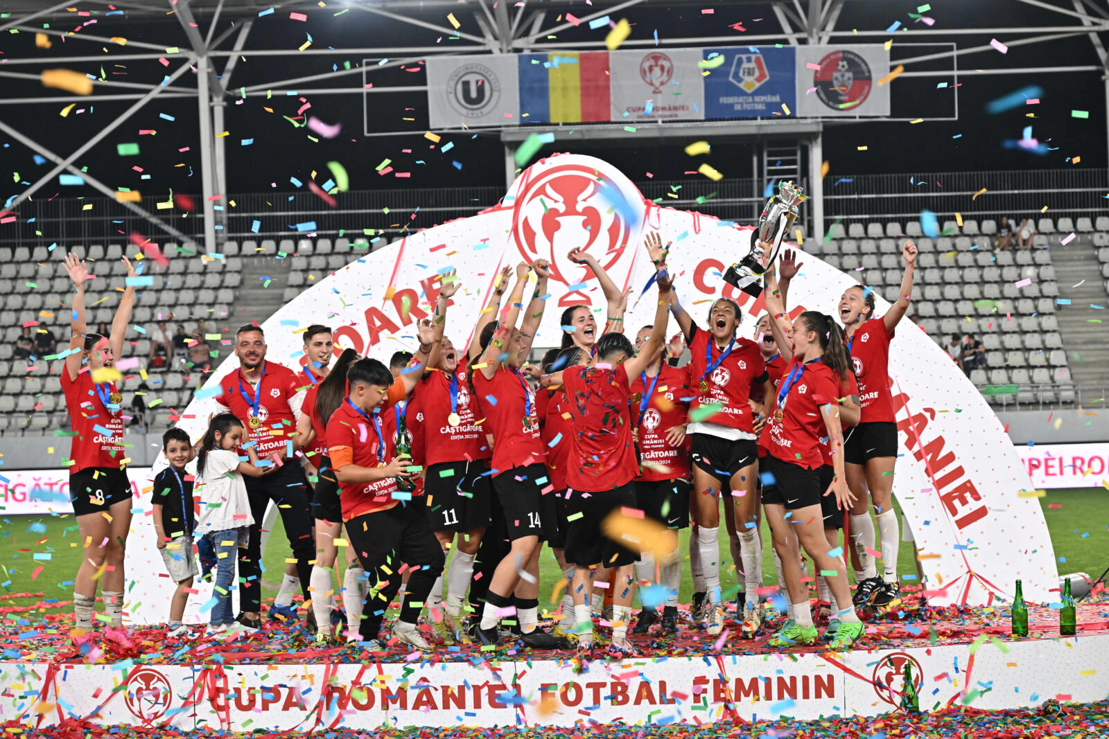 Stadionul din Complexul Național Sportiv „Arcul de Triumf” din Capitală a găzduit finala Cupei României la Fotbal Feminin, ediția 2023/2024, a cărei câștigătoare este Universitatea Cluj!