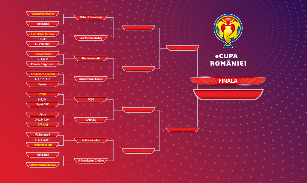 Toate jocurile din eCupa României sunt transmise în direct pe Facebook Cupa României și YouTube FRF TV.