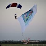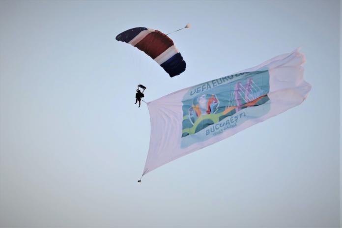 Cu 300 de zile înaintea meciurilor UEFA EURO 2020 din grupa C de la București, steagul orașului gazdă a fost purtat de un parașutist la Bucharest International Air Show.
