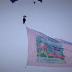 Prin amabilitatea Departamentului de Parașutism al Aeroclubului României, steagul Bucureștiului de oraș gazdă a fost lansat împreună cu un parașutist și a aterizat în aplauzele publicului pe pista Aeroportului Aurel Vlaicu (fost Băneasa). Evoluția instructorului parașutist tandemist Adrian Sacară a fost coordonată de la sol de doamna comandant Cristina Stenczel și a fost completată de coborârile altor 18 parașutiști care au lansat efecte pirotehnice. Steagul Bucureștiului a avut o suprafață de 200 mp și a necesitat un balast de 45 kg pentru a putea fi desfășurat în poziție de drapel. A fost o reușită a Departamentului de Parașatusim al Aeroclubului României, care de altfel deține și un record de coborâre a unui drapel de 800 mp.